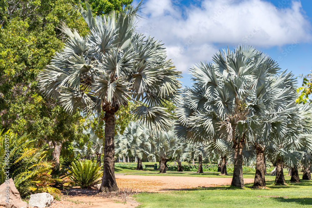 The Bismarckia Nobilis Palm is a large, impressive, single stem tree. It grows to heights of 30-60' and has a wide canopy of 20-30 leaves.